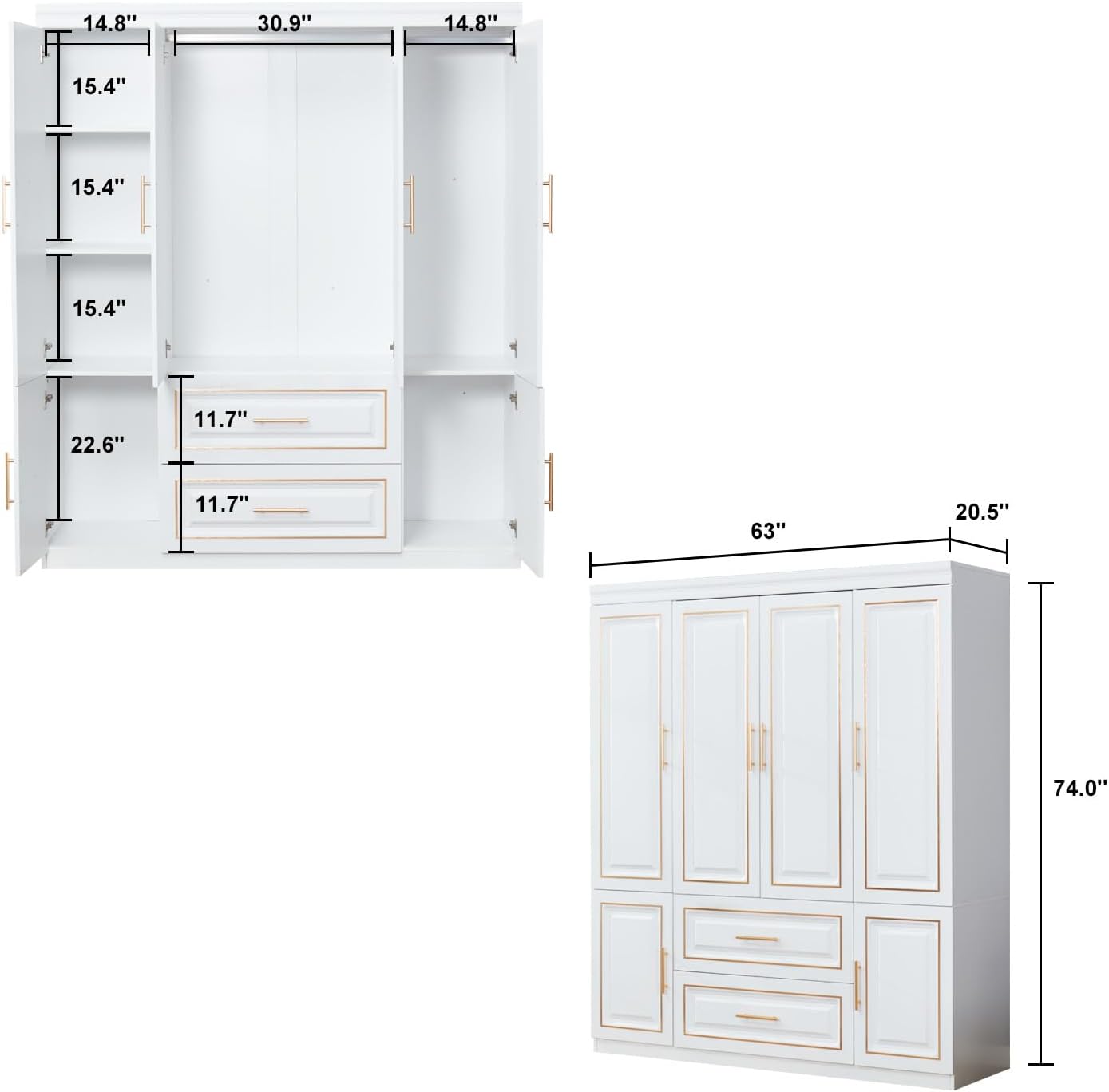 - 【Versatile Storage Solutions】 – Explore a wide array of storage options with our wardrobe closet, complete with a hanging rod and convenient side shelves for bedding. This intelligently designed piece maximizes organization for your clothing and household items. Measuring 63″(W) x 20.3″(D) x 74.2″(H), this armoire wardrobe closet offers ample space to meet all your storage needs