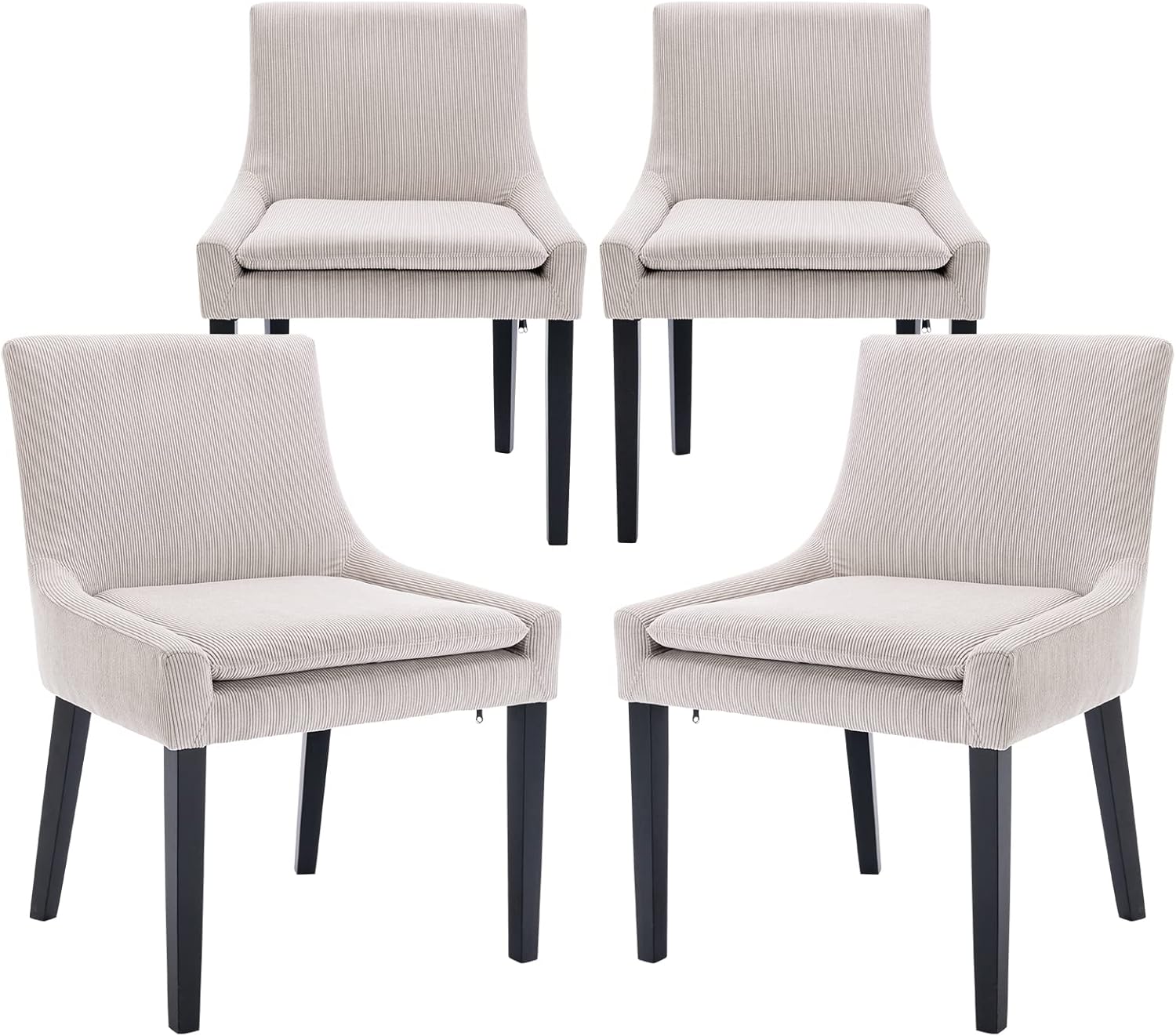 Modern Dining Chairs Set of 4, Upholstered Corduroy Accent Side Leisure Chairs with Mid Back and Wood Legs for Living Room/Dining Room-Beige