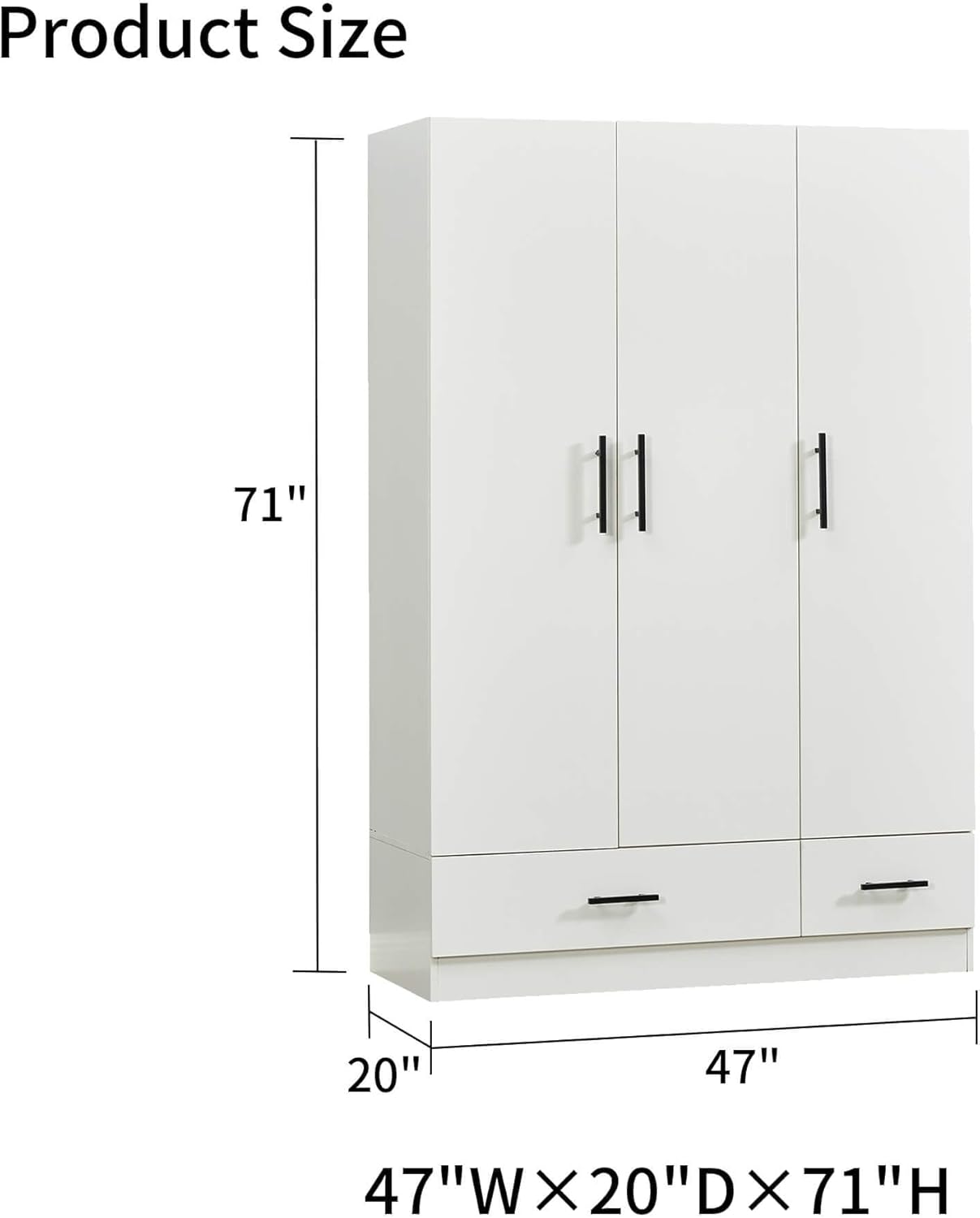 - [Efficient Storage Solution]-This wardrobe cabinet includes a storage cabinet, 2 storage drawers , and 1 hanging rods to keep your clothes neatly arranged and maximize space. The bedroom armoires ‘ white design adds brightness for bedroom. At the same time, the clothes cabinet can enhances storage functionality.